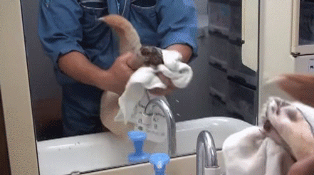 キレイに拭いてもらって尻尾ふりふりなムックくん♡