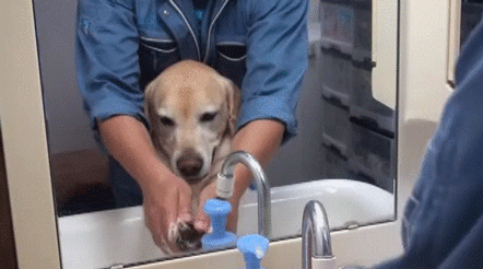お散歩から帰ってきたらまずは手を洗わなきゃ!