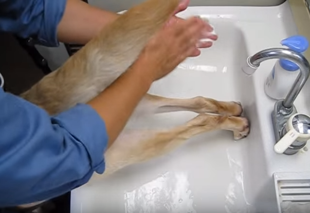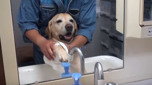「手洗いが終わったら足も洗ってもらうんだ♪」
