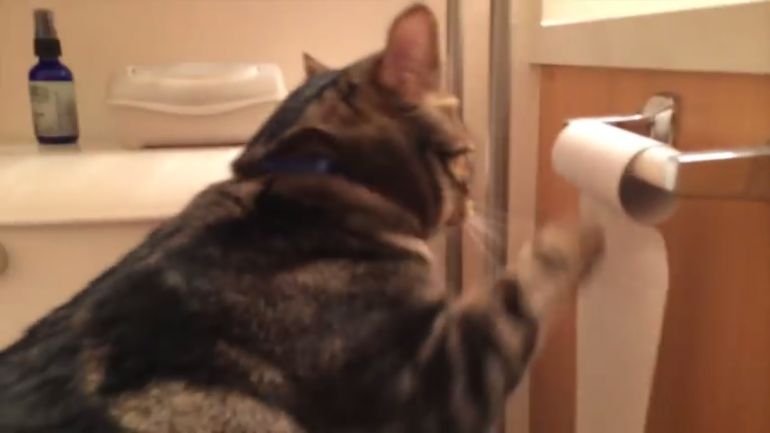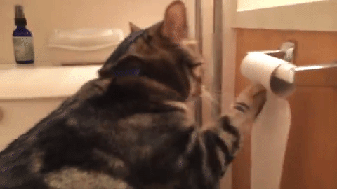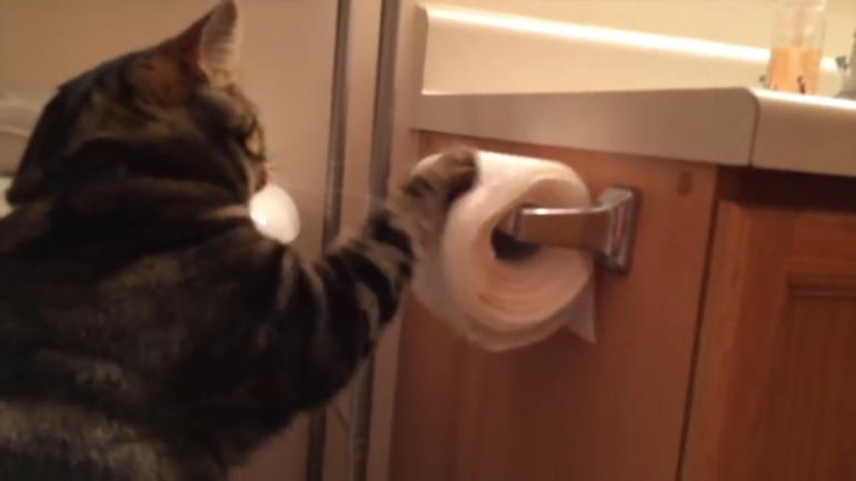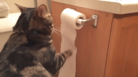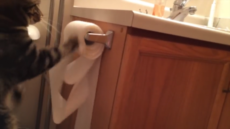 トイレットペーパーで絶賛イタズラ中のにゃんこさん(゚д゚)
