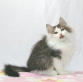 かわいいかわいいノルウェージャンをお譲り頂きありがとうございました。猫にも人にも優しいブリーダーさんで、こちらが質問することがない程しっかり猫さんの説明をして下さり不安なく連れて帰ることが出来ました。