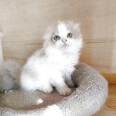 スコティッシュフォールド女の子三毛猫。webを見て一目惚れでした。見学での初対面では他の猫ちゃんたちに比べると控え目でちゃんと懐いてくれるか心配でした。中山さんから気楽にかつ適切なアドバイスがあったからこそ直感を信じて購入に踏み切りました。お迎え当日もご飯やトイレ砂、兄妹のにおいのついたタオルなど今使っているものを分けて頂き、猫ちゃんが安心して新しい環境に馴染めるようお心遣いがありがたかったです。