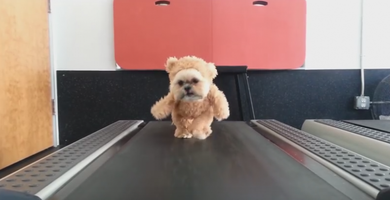 ランニングマシーンの上を歩いているのは、テ、テディベア・・・!?Σ( ゚Д゚)