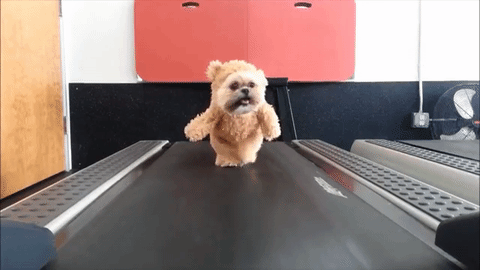 ランニングマシーンから落ちそうになって、あわててダッシュ♪