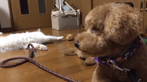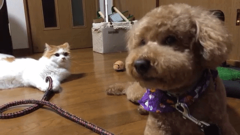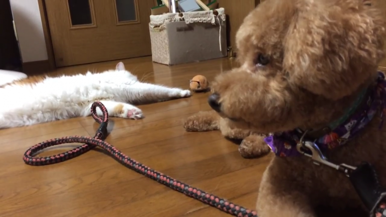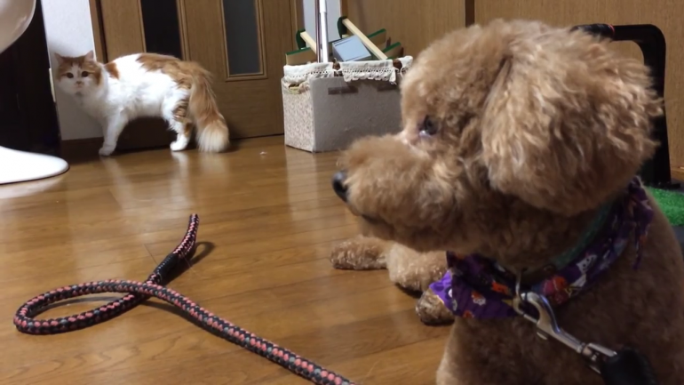 ねこちゃん「(いっしょに住んでるトイプーくんだよね・・・?( ゚Д゚))」ジーッ