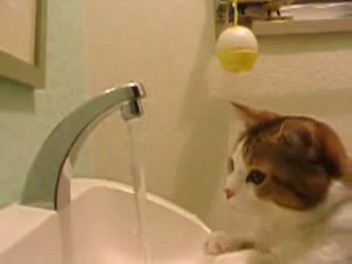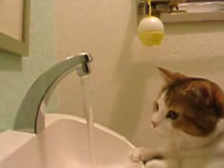 蛇口のお水を見つめるにゃんこ。