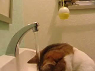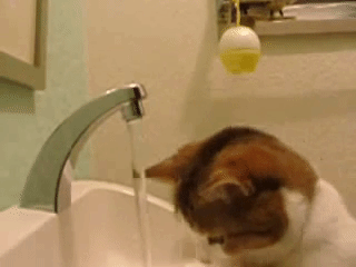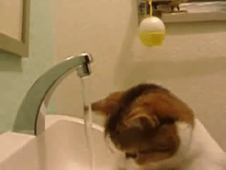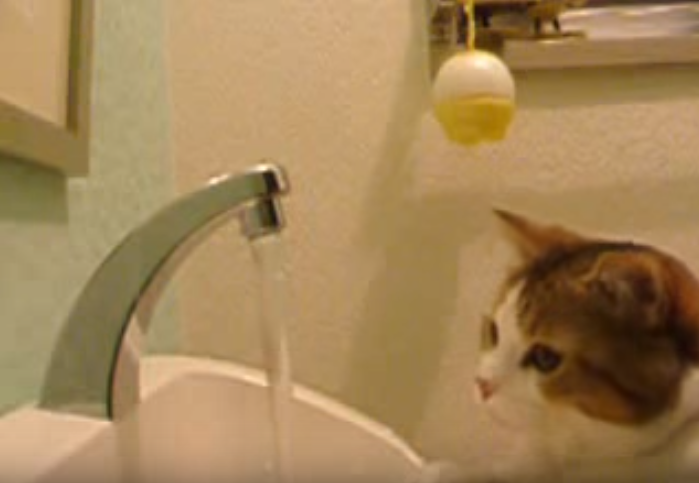 無情にもにゃんこの頭にお水が降り注ぎます