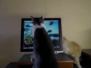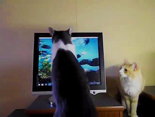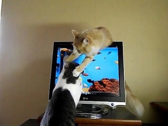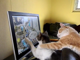 モニターをカキカキしている弟にゃんこ。