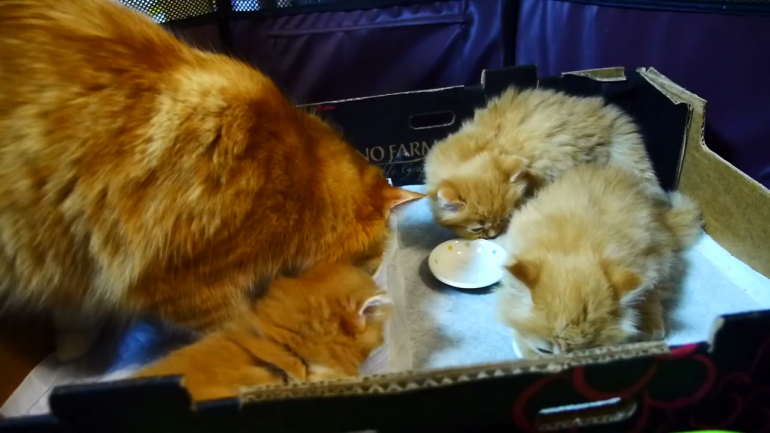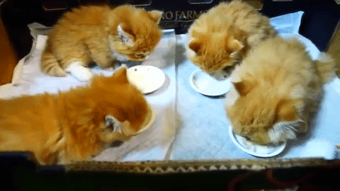 マンチカンの赤ちゃんたちは、みんななかよくごはんタイム( ´艸`)