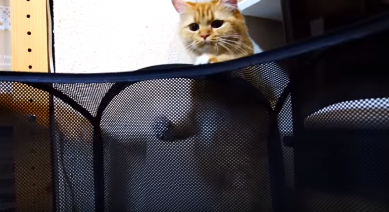 そんな赤ちゃんたちの様子を、サークルの外から見守る母ねこ♡