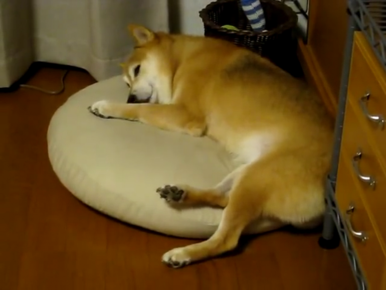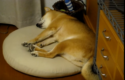 「ムフフ、もう食べられないわん・・・( ̄ー ̄)」ピクピク