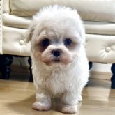 そして、お迎え後1か月半となり、現在はよく食べるせいか(食べさせすぎ?)ぐっと大きくなりました。だた、マルチーズあるあるなのでしょうが、毎日拭いていますが涙焼けがあり試行錯誤中です。