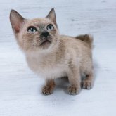 小さいけれど、体はとても丈夫で、非常に健康な猫です。くりくりした目が大人になってもベイビーフェイスで、愛らしいかわいい顔で毎日寄り添ってくれます。性格はとても温厚です。どちかというと、おとなしい猫です。