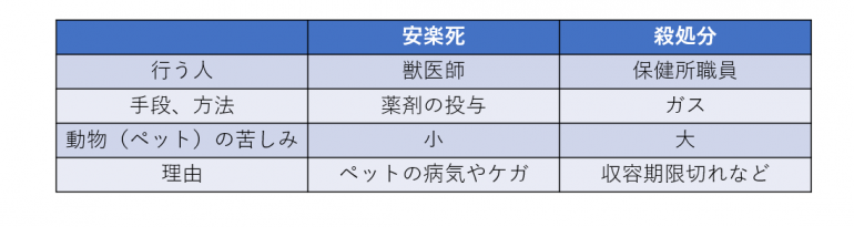 安楽死とは、獣医師が麻酔剤などを投与し、苦しみや痛みを感じさせずにペットの命を終わらせることです。くれぐれも間違えないでほしいのは保健所で行われている「殺処分」とはまったく別物だということです。