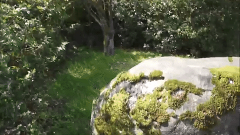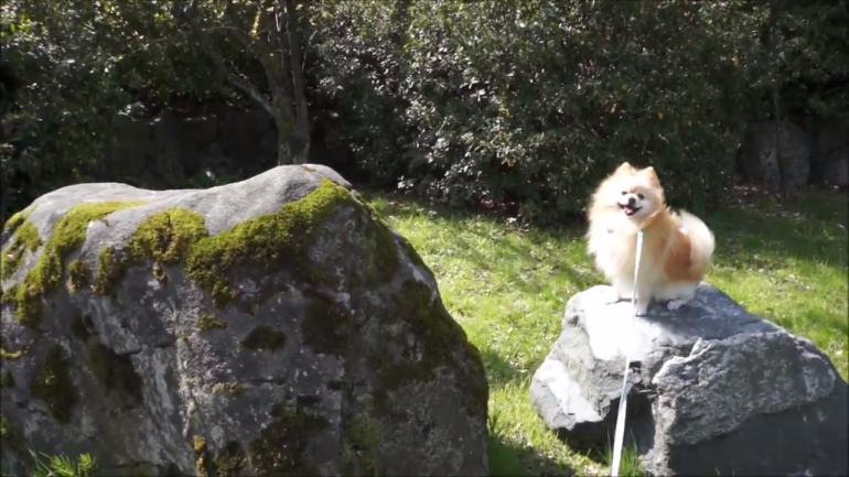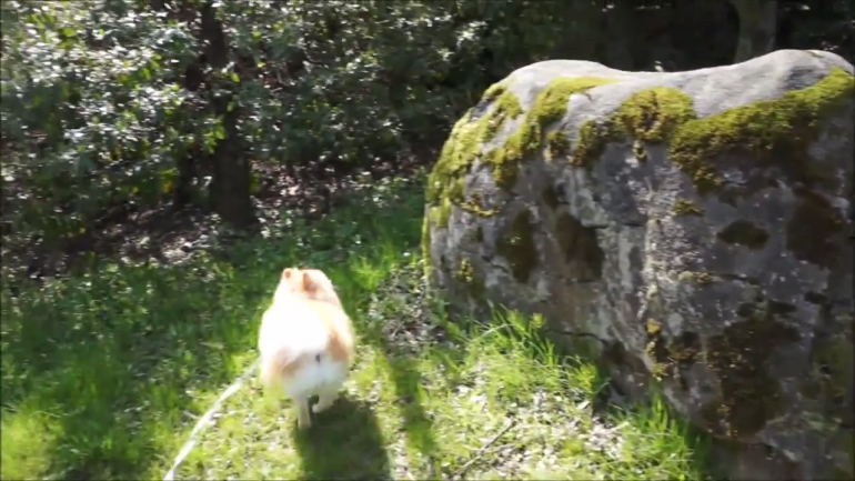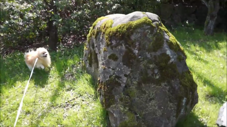 飼い主さんとのお散歩中に、大きな岩を発見です!
