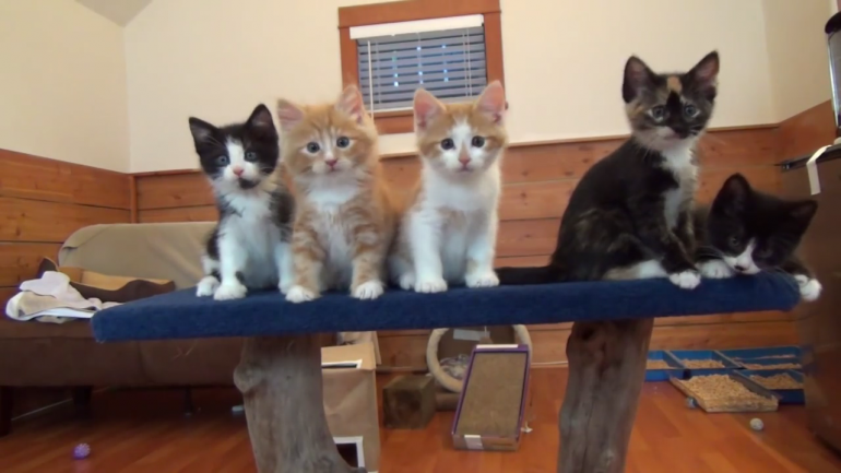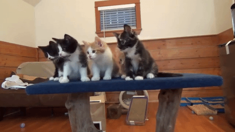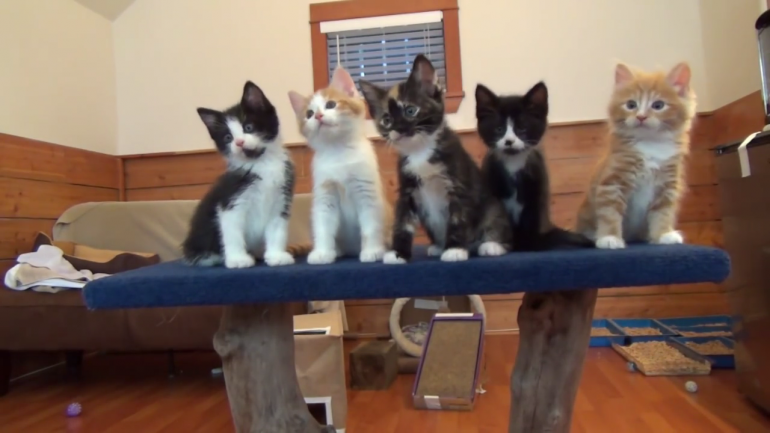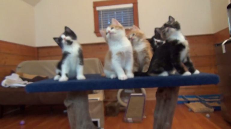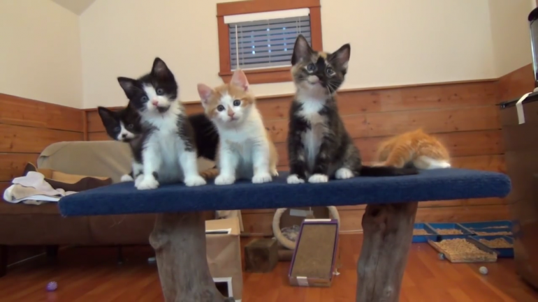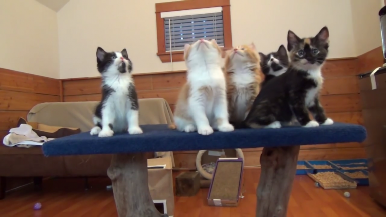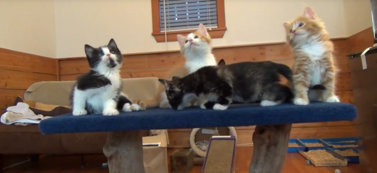 実はおもちゃを目で追いかけていた子ネコちゃん達。