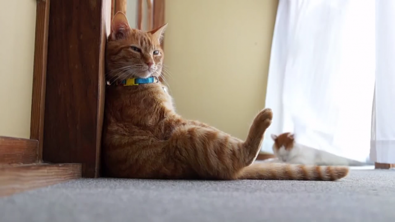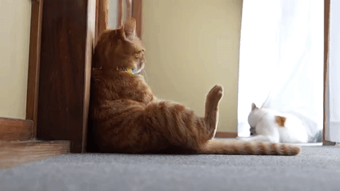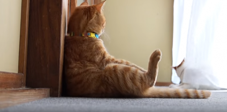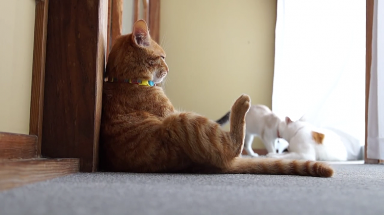 もう一匹のネコちゃんが通り過ぎてビックリ!