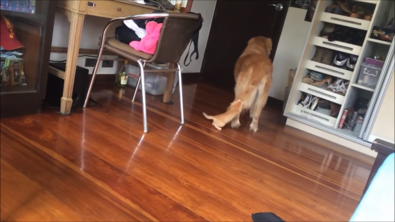 去ろうとするワンコを、必死に引き止める子ネコ…☆