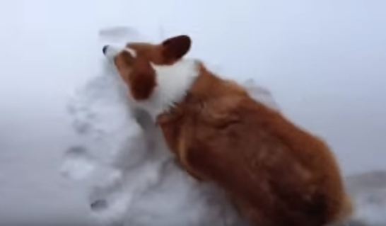まっしろな雪景色にうれしそうなコーギー♪目の前に広がる銀世界と足跡のない雪……たたっと走り出したコーギーのとった行動とは?雪景色あるあるに思わずほっこりする動画です(/・ω・)/☆(6秒)