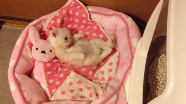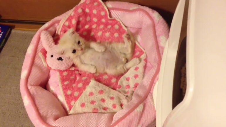 遊び疲れたのか、無防備な姿の子ネコちゃん。