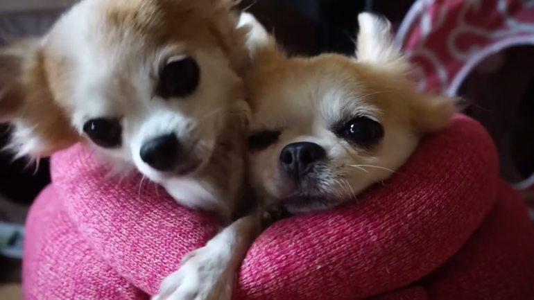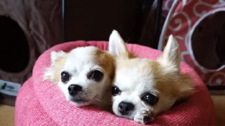 至福のひとときを過ごす仲良しチワワコンビなのでした♡