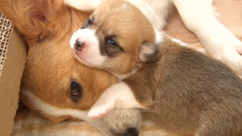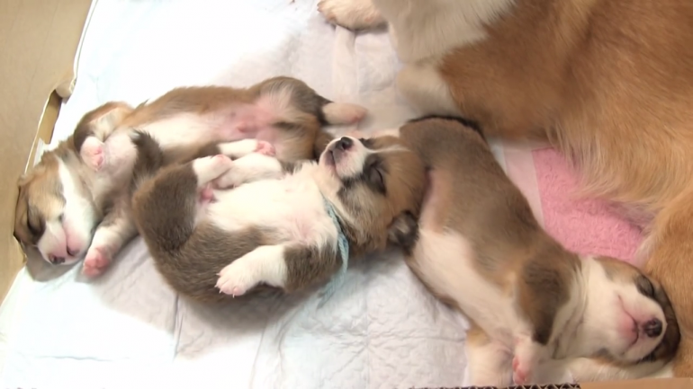 生まれたばっかりのコーギーの赤ちゃんたちは、