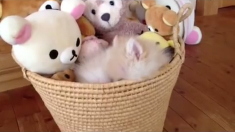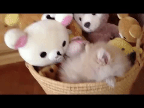 ぬいぐるみだらけのバスケットにダーイブっ!ヘ(*゚∇゚)ノ