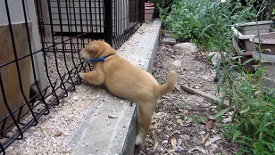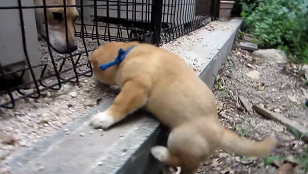 柵の向こうからおとなの柴ちゃんも応援に♪