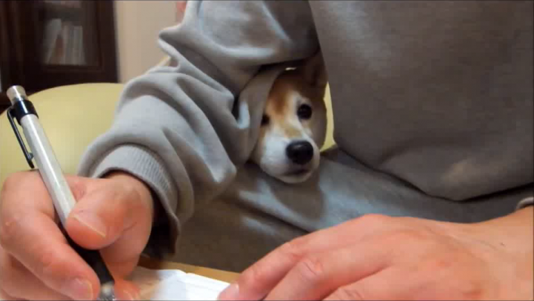パパさんが書き物をしている腕の隙間から、