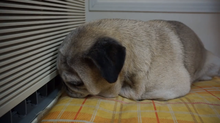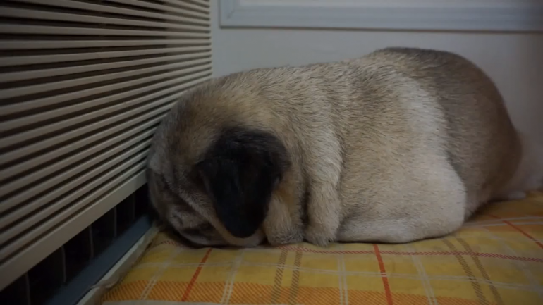 お顔をぎゅうっとうずめて熟睡中のパグちゃん。