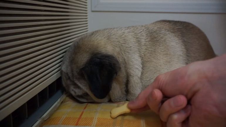 どんなに眠くても、おやつには敏感なパグちゃんでした…☆