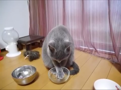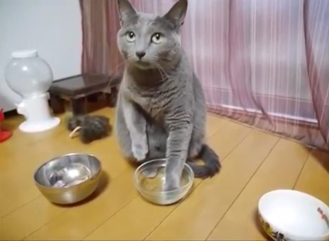 ネコさん「ごはん入れるのはここ、ここにゃの」
