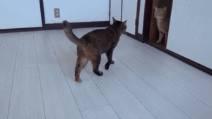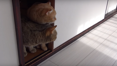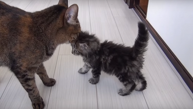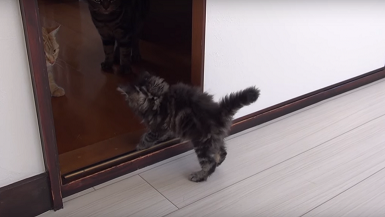 初対面にドキドキな先住猫さんと好奇心いっぱいなおさむくん。