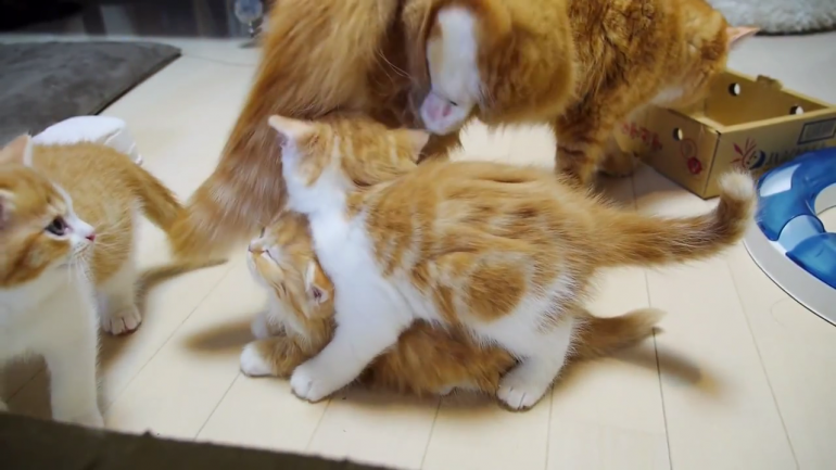 そこでもくっついてゆく子ネコちゃん達。ぎゅむぎゅむ。