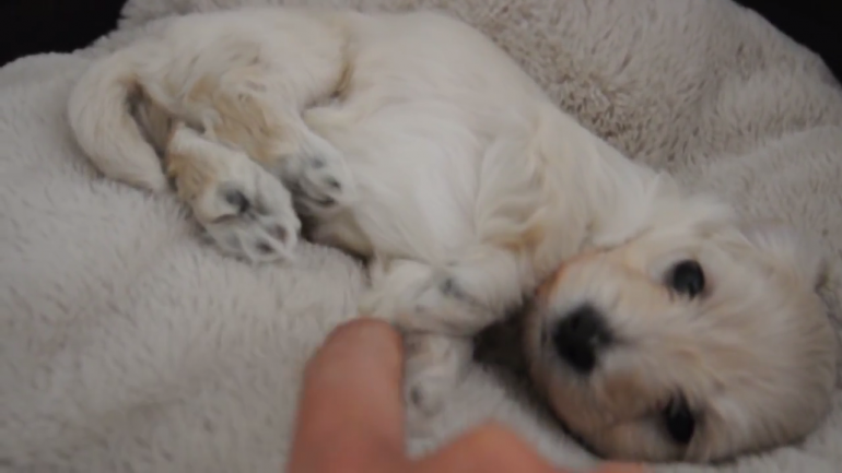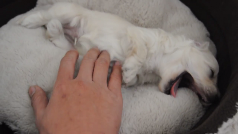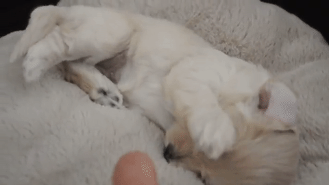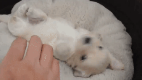 どんなに眠くても、飼い主さんにかまってもらうと嬉しくなっちゃうワンコちゃん♡