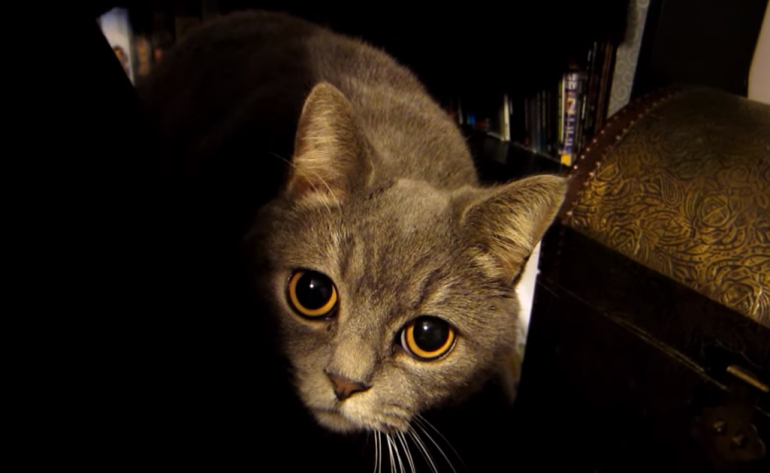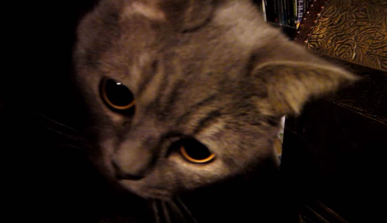 飼い主さんがマンチカンのシーバちゃんをカメラで撮影中♪