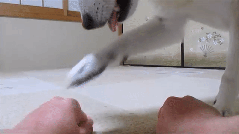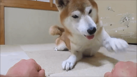 突然、飼い主さんから両手を差し出されたちゃめ。