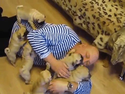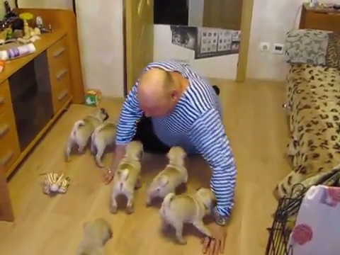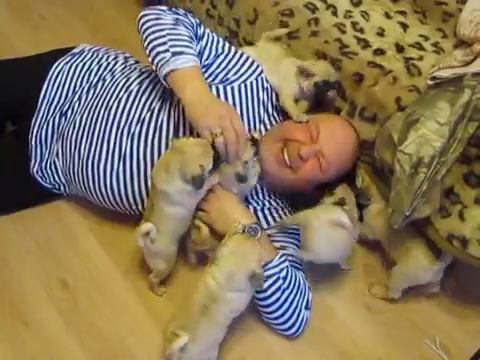 おじちゃん大好きすぎる、パグの赤ちゃんたちなのでした♪