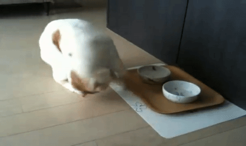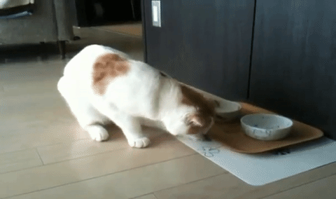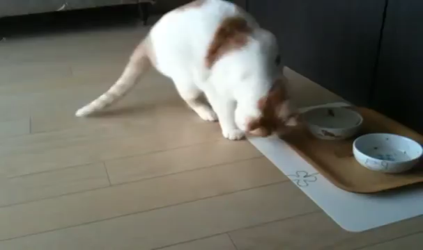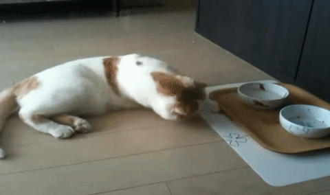 おやおや、食べこぼしたカリカリを発見したようです♡