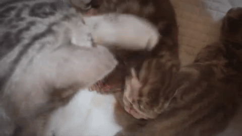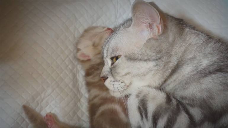 大きな愛に包まれて、赤ちゃんねこも幸せそうにスヤスヤ♪