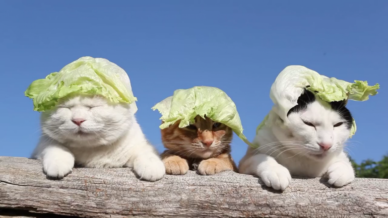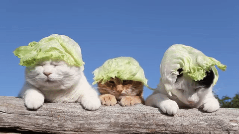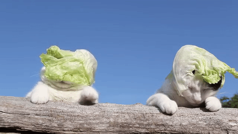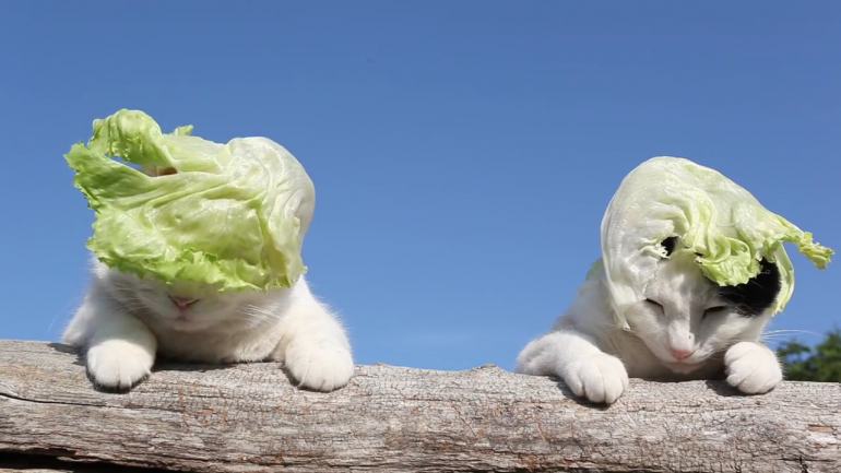 なかよくレタス帽子をかぶって、日向ぼっこ中。。○