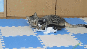しまいには、孫ネコをダブルでペロペロ~♡