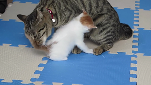 母ネコのことだってペロペロ~( *´Д`)