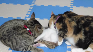 おばあちゃんの愛情をたっぷり注いでもらっている孫ネコちゃんたち。