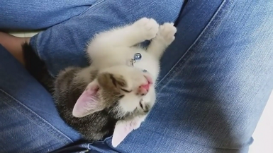ご主人の足の上でくつろぐ、一匹のニャンコちゃん。