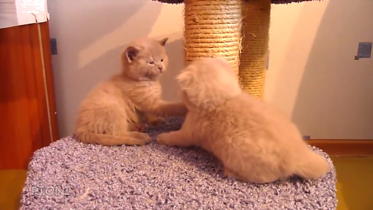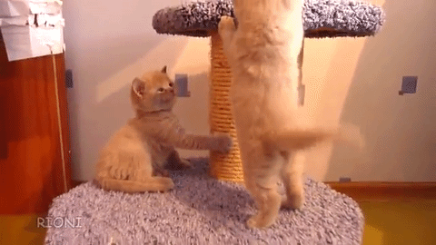 気を取り直して、キャットタワーの上でじゃれっこ♪