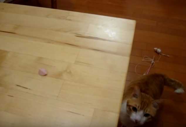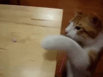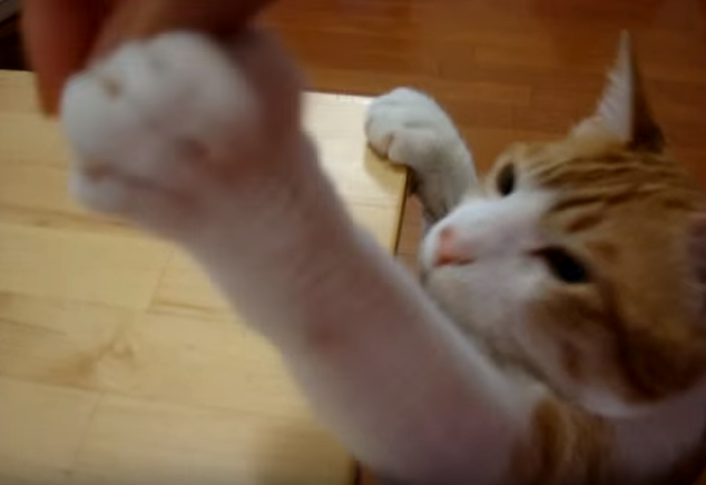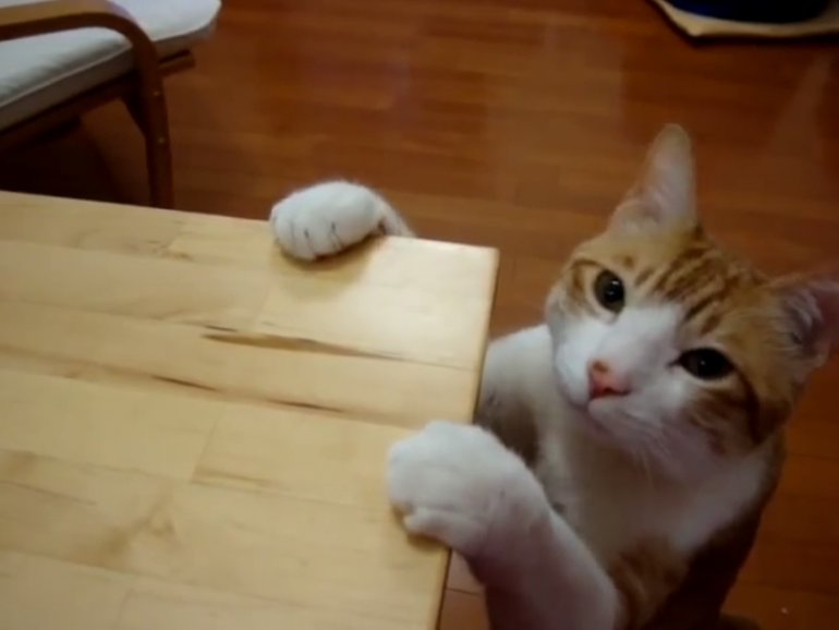 猫ちゃんがテーブルに手を置いて待っていると・・・