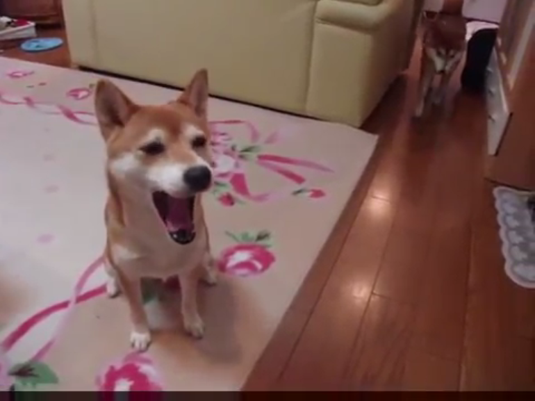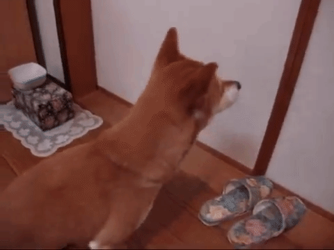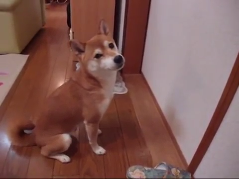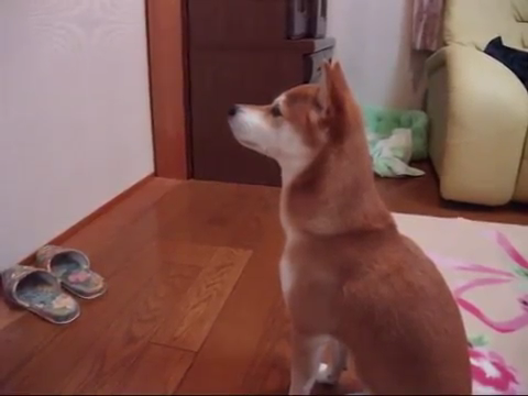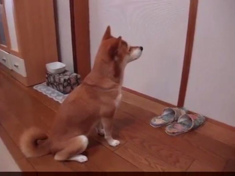 飼い主さんの寝室をじっと見つめる柴犬ちゃん。