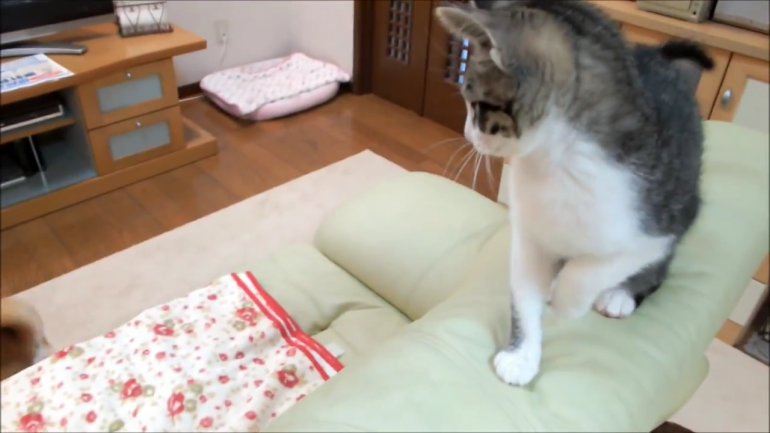 ねこのミルキーちゃんも思わず呆れ顔…(´~`;)