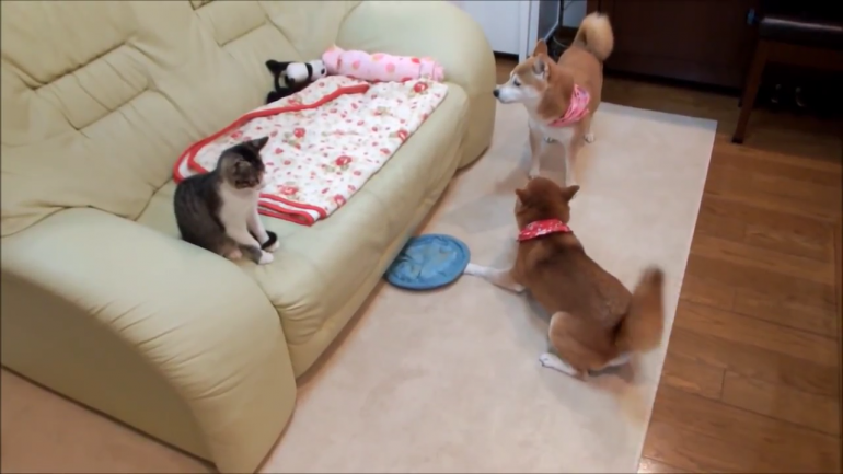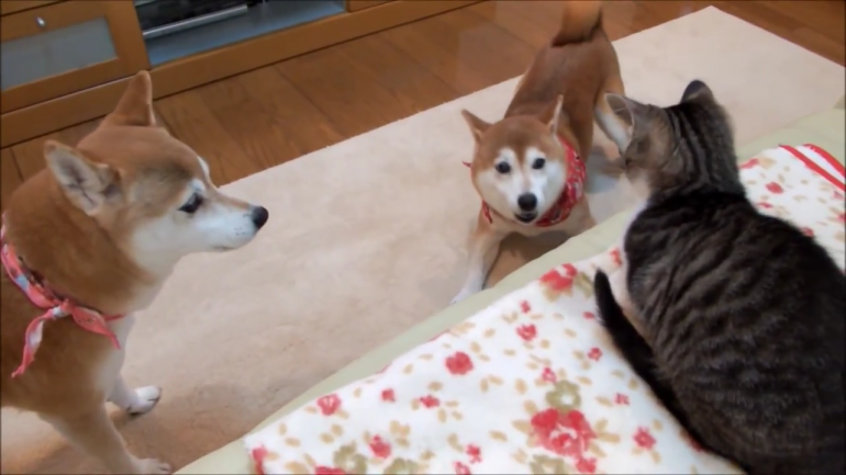 おうちに帰ってきた柴犬のひかりちゃんといちごちゃん。